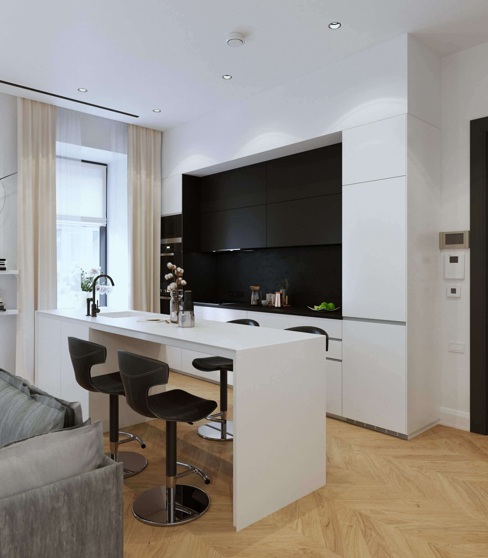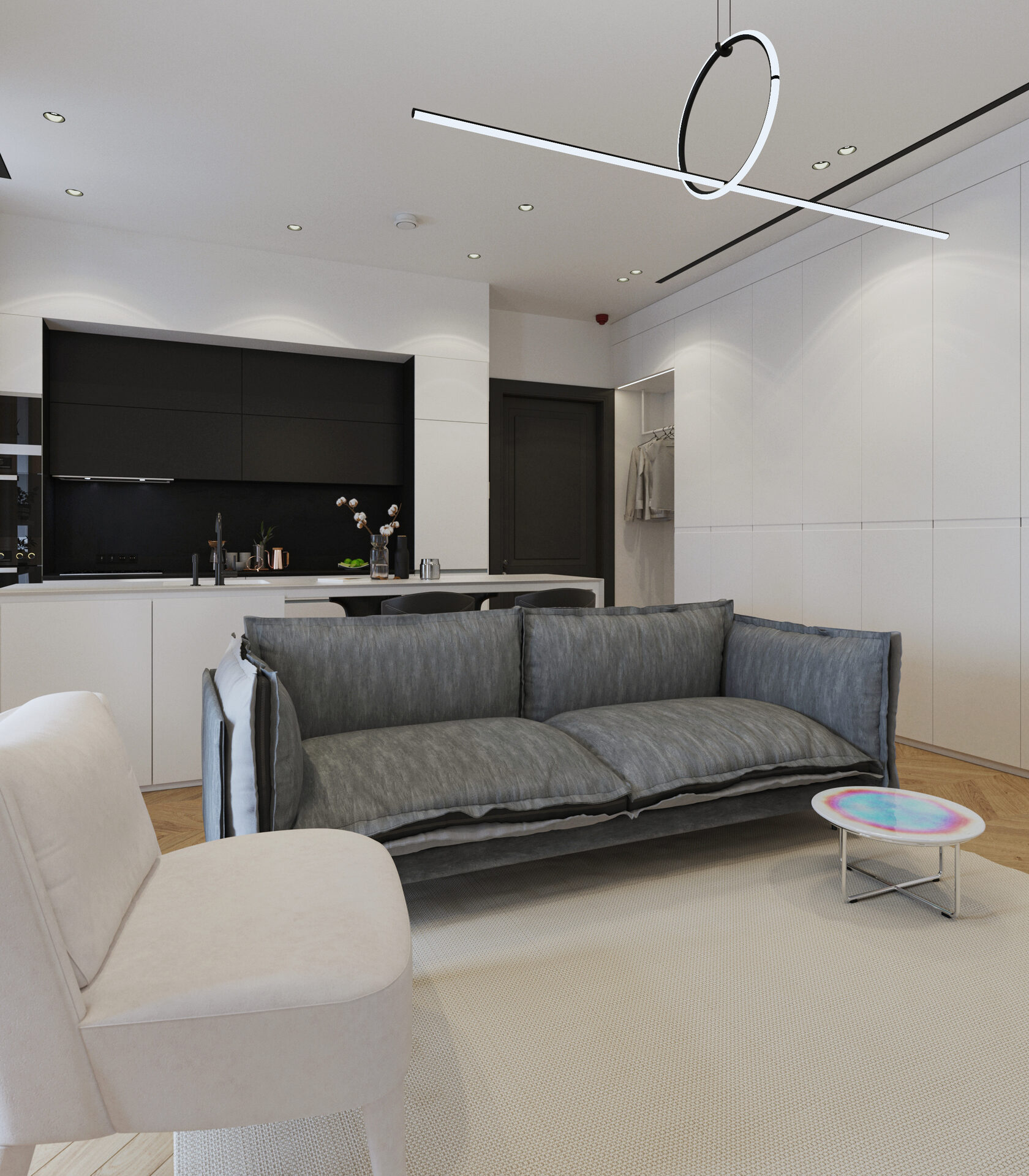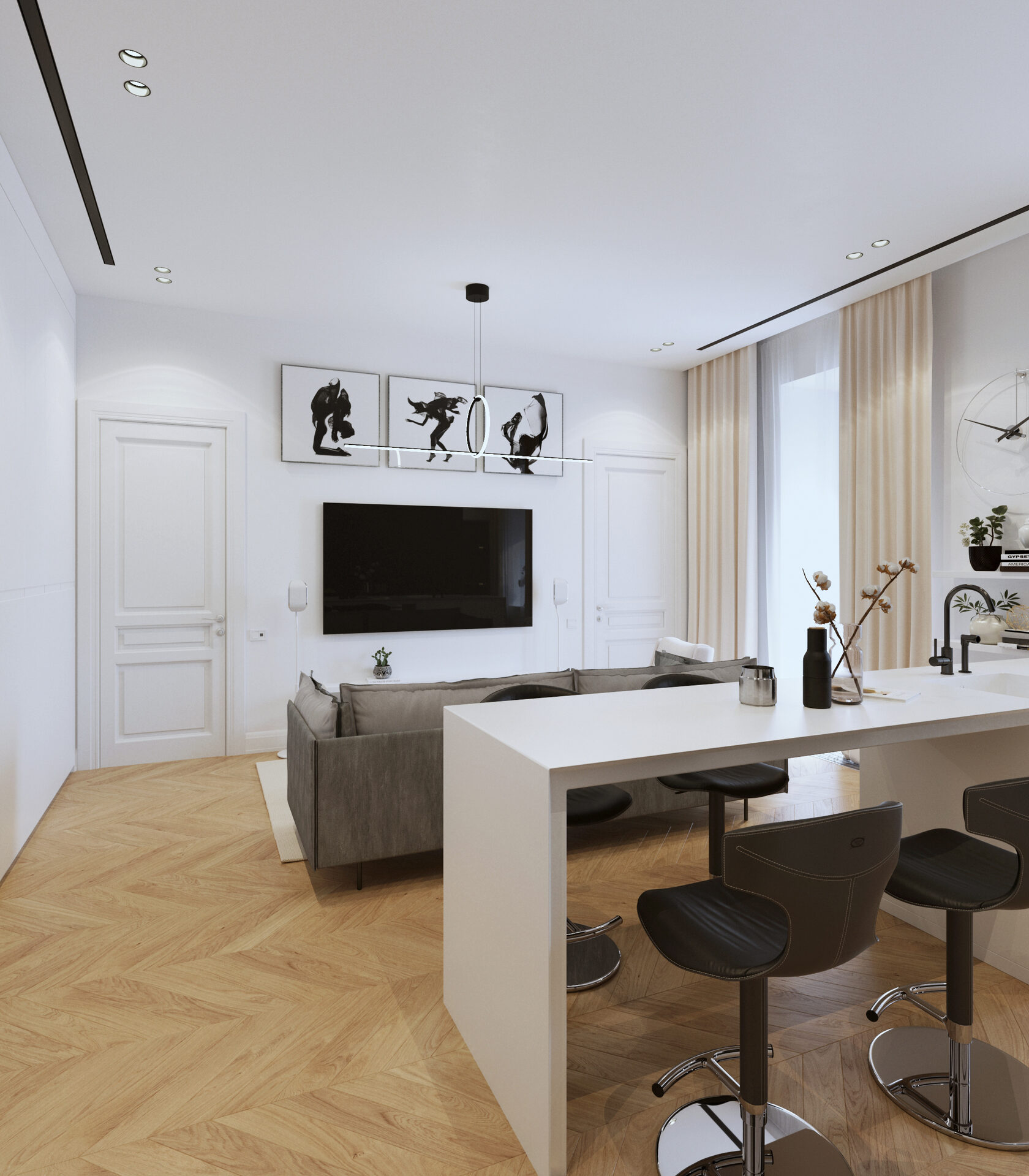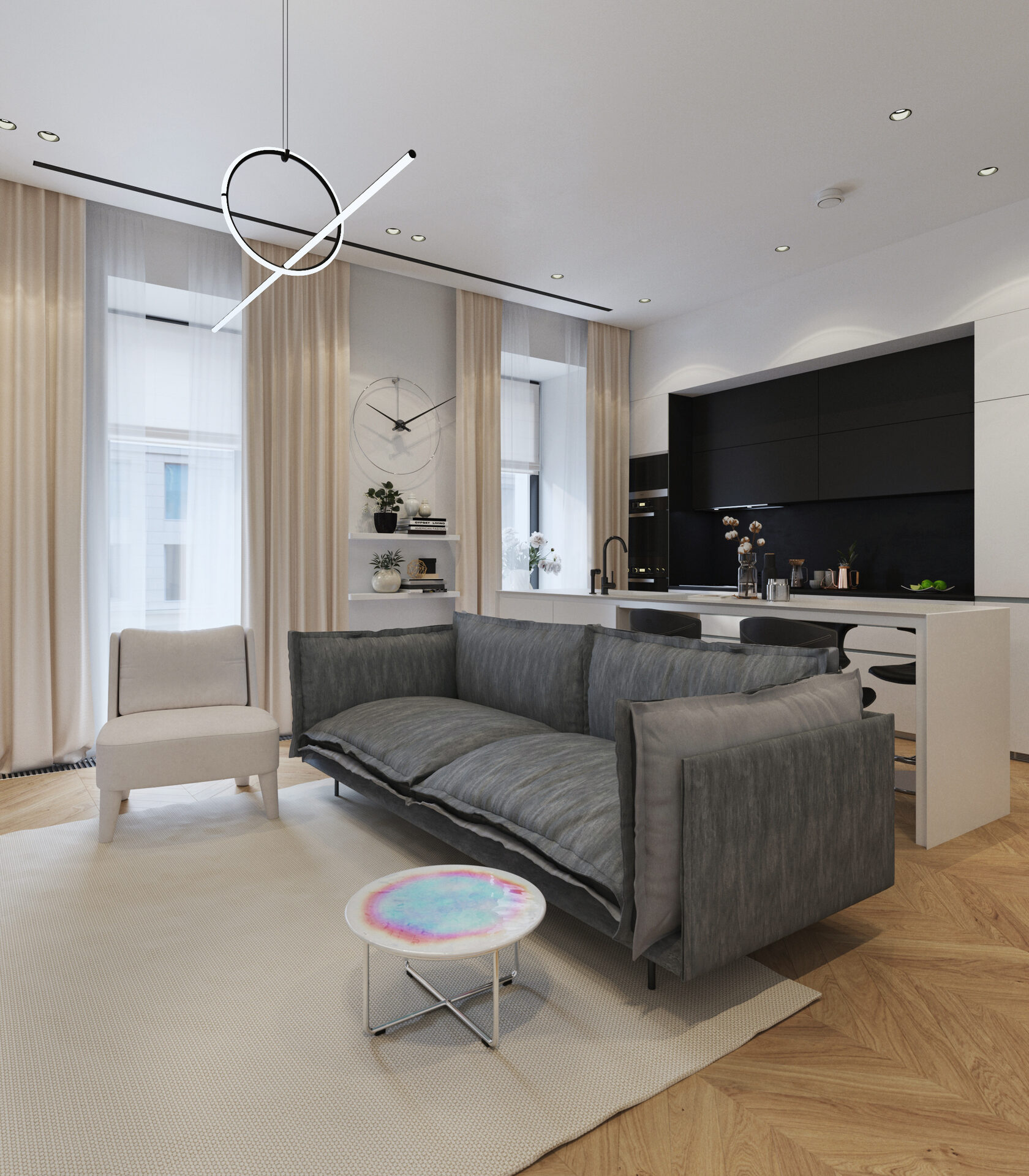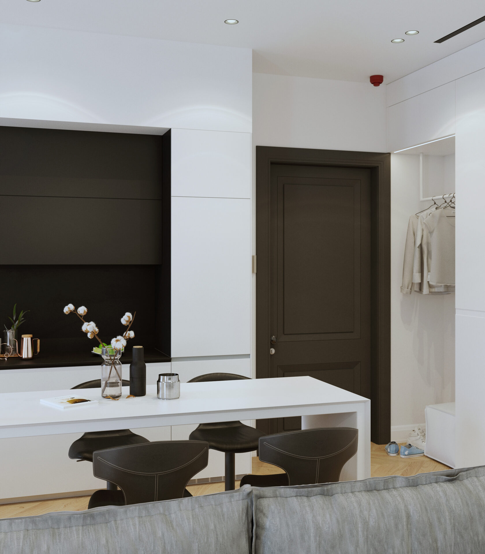Уютная квартира с террасой в самом сердце столицы. Лаконично, сдержанно и очень практично и функционально.