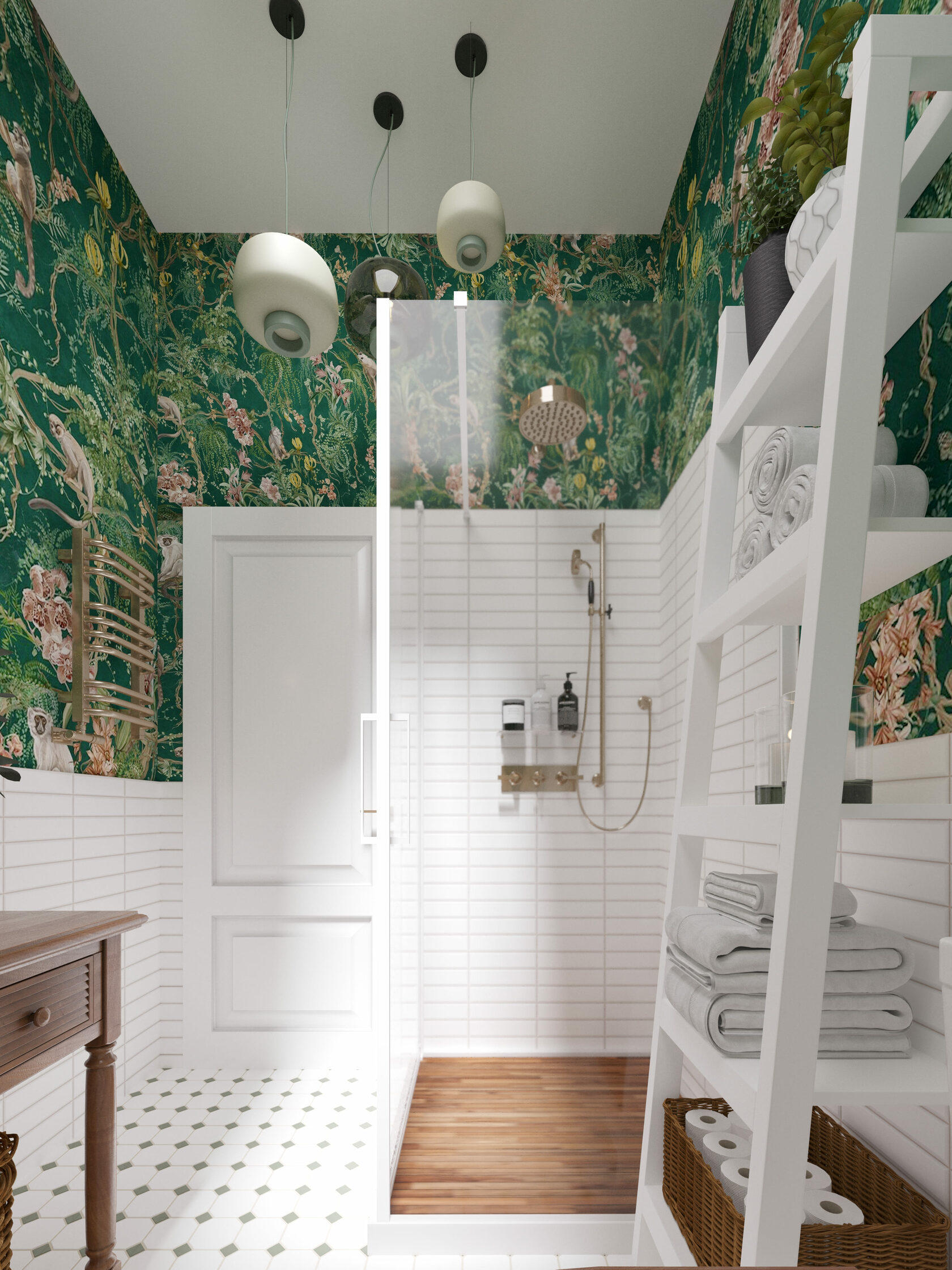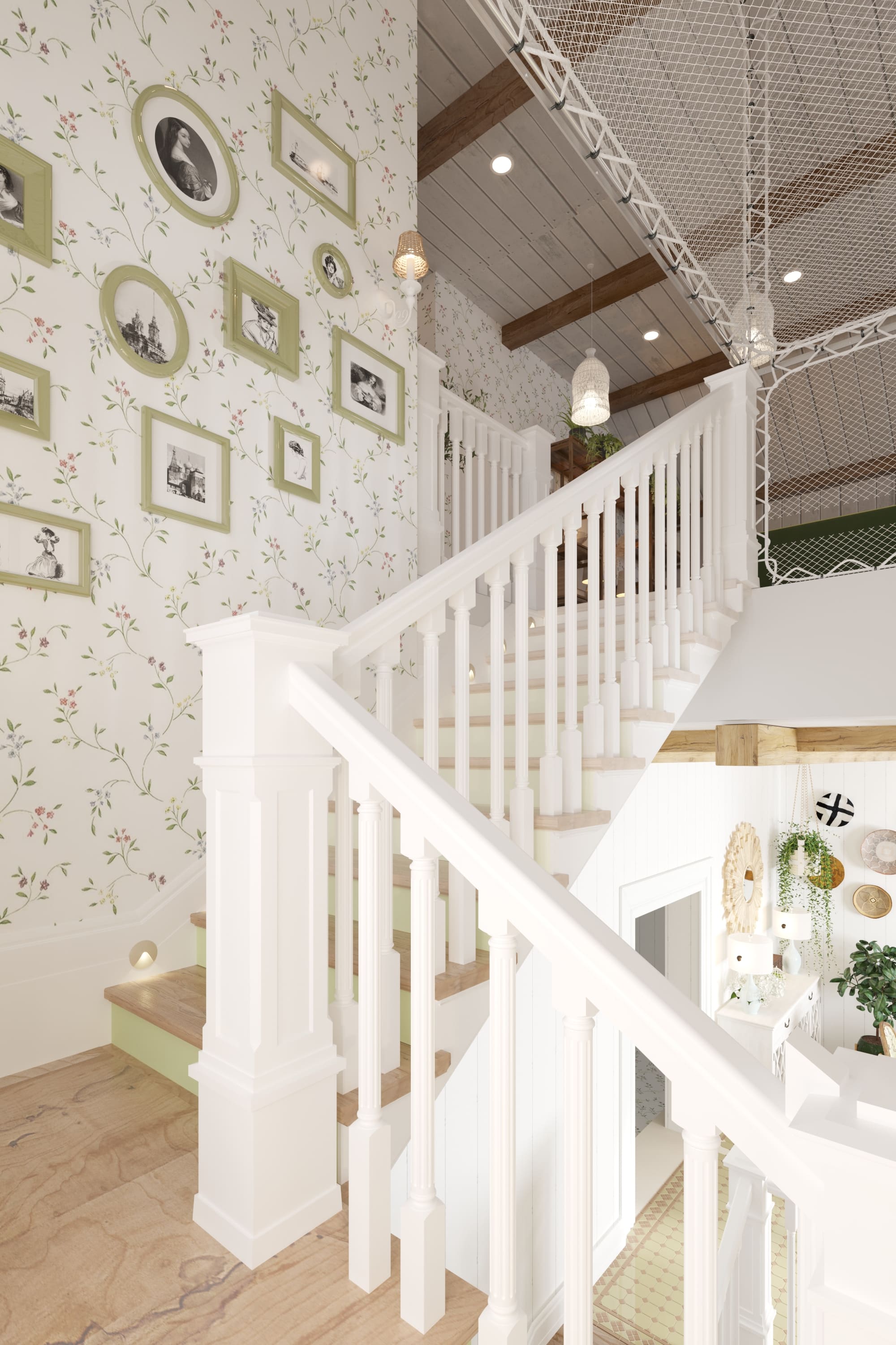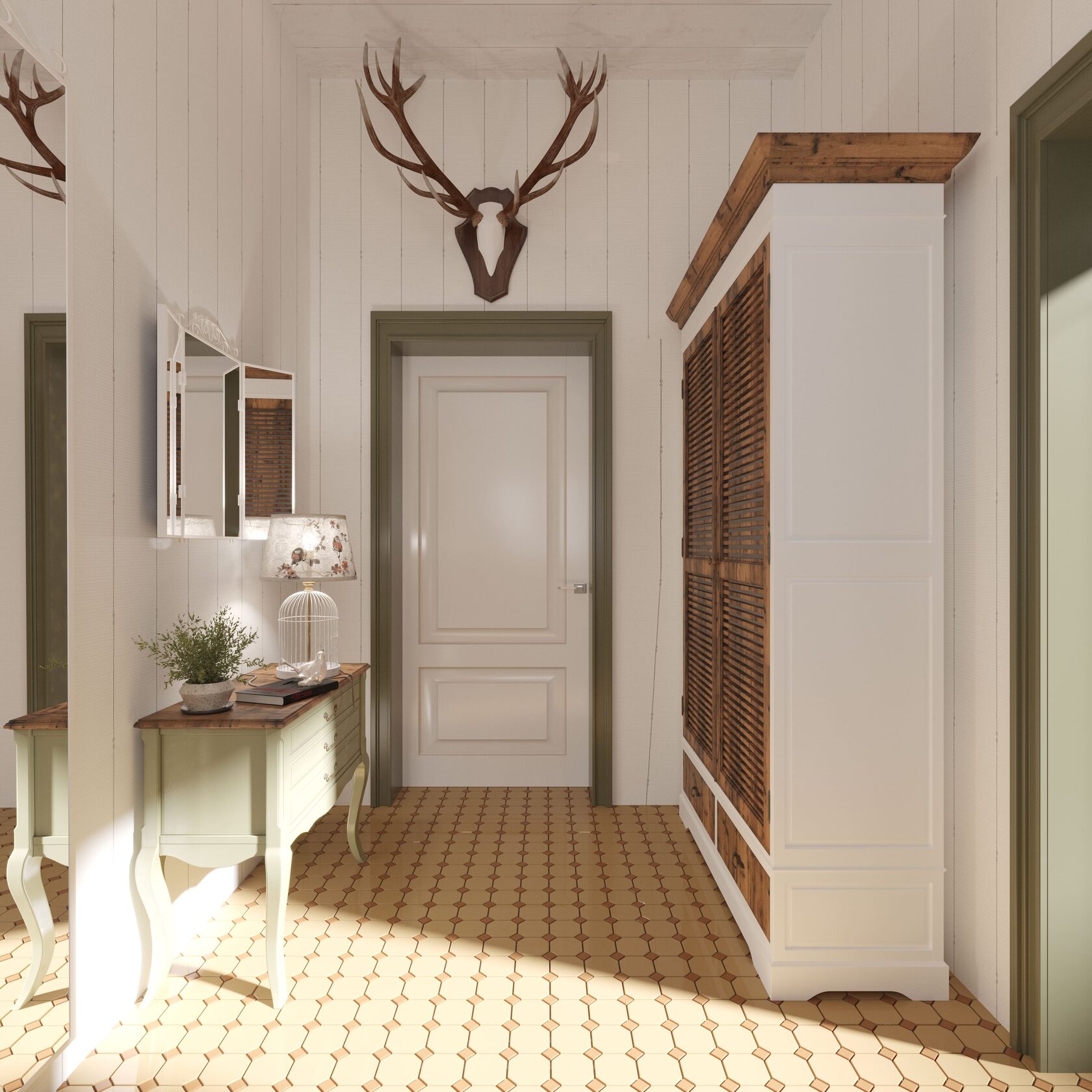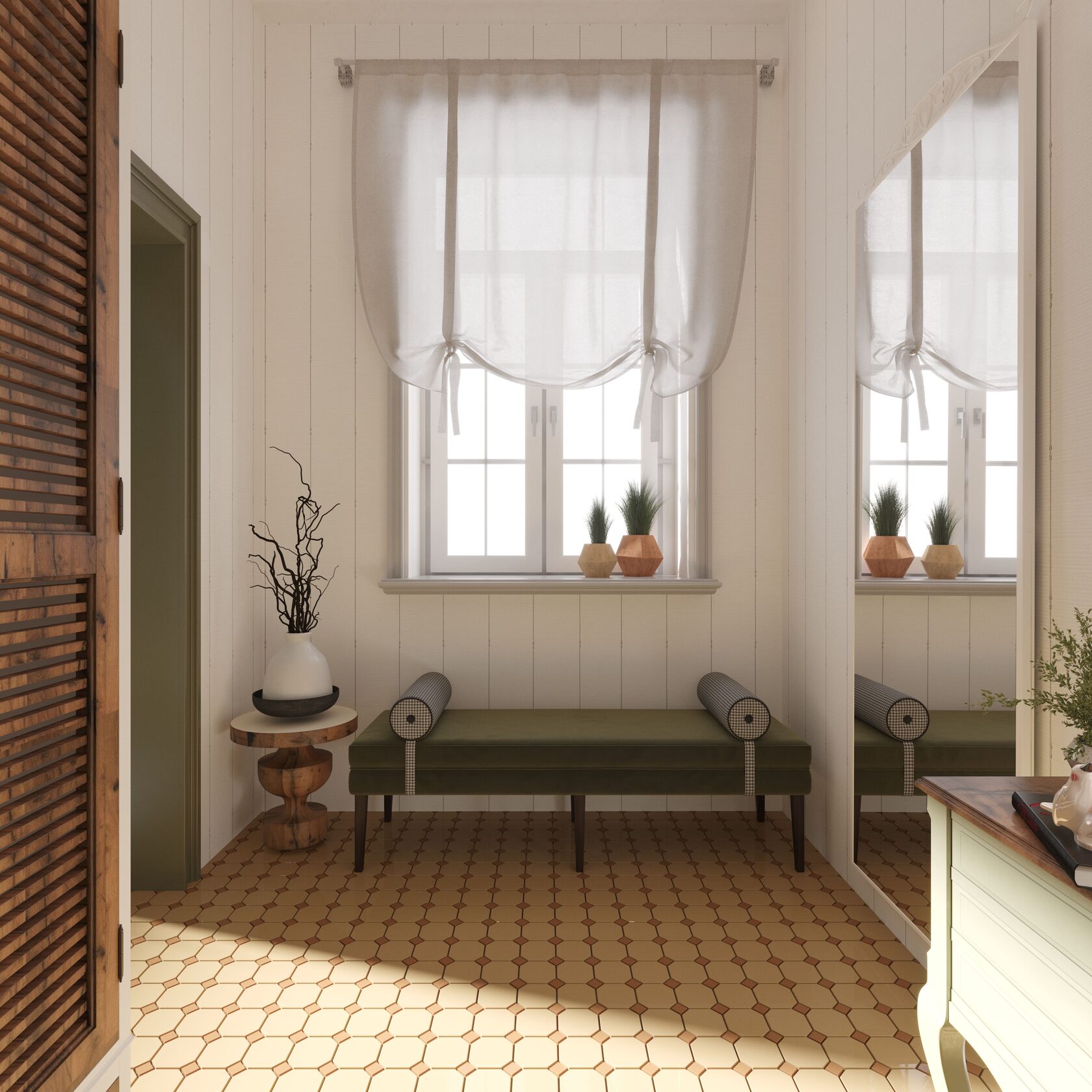 Стилистика очень уютная и "милая". Хозяйка любит зелень и прованс — именно это мы пытались показать в интерьере. Испанская плитка, вагонка, очаровательные обои и отделка деревом — основные элементы интерьера.