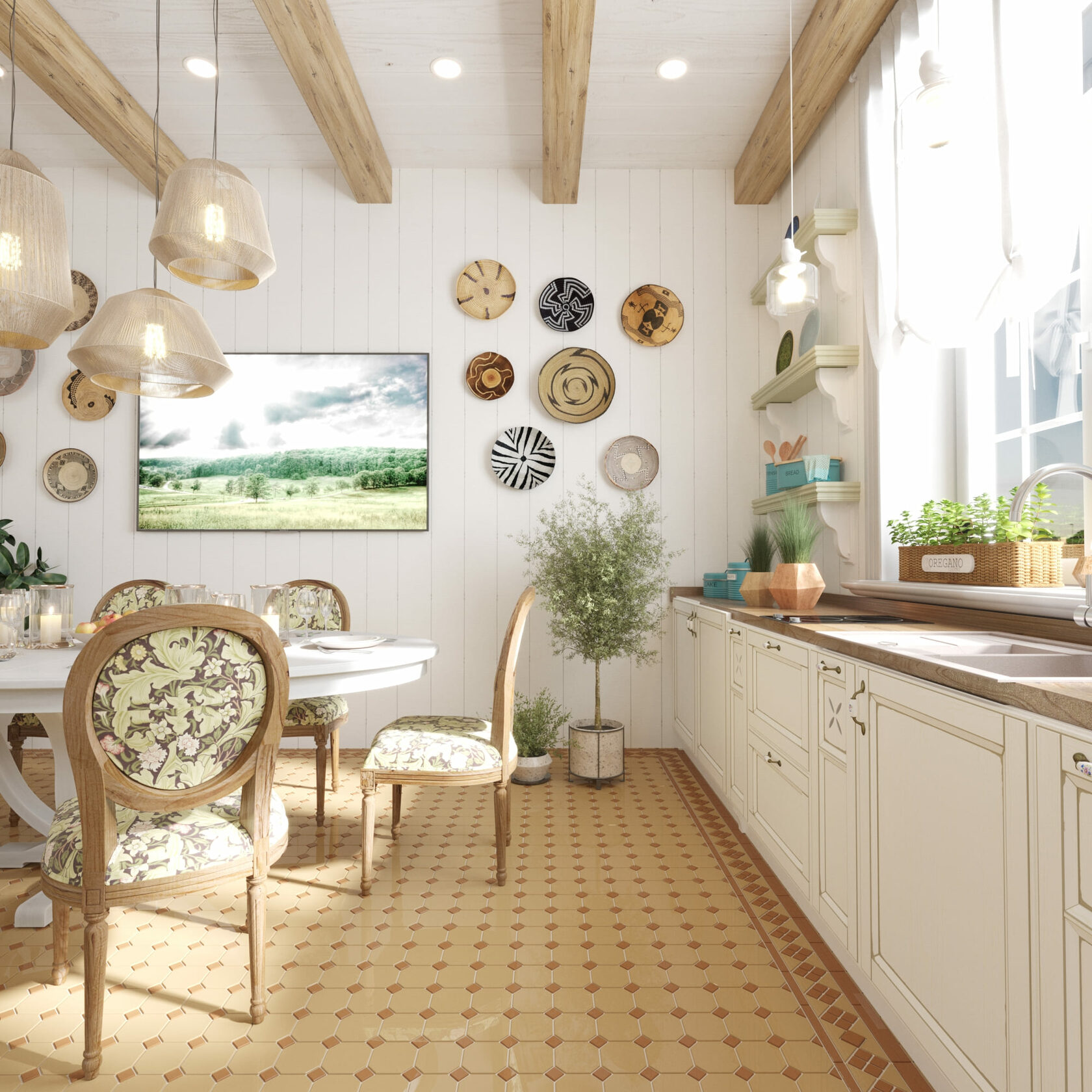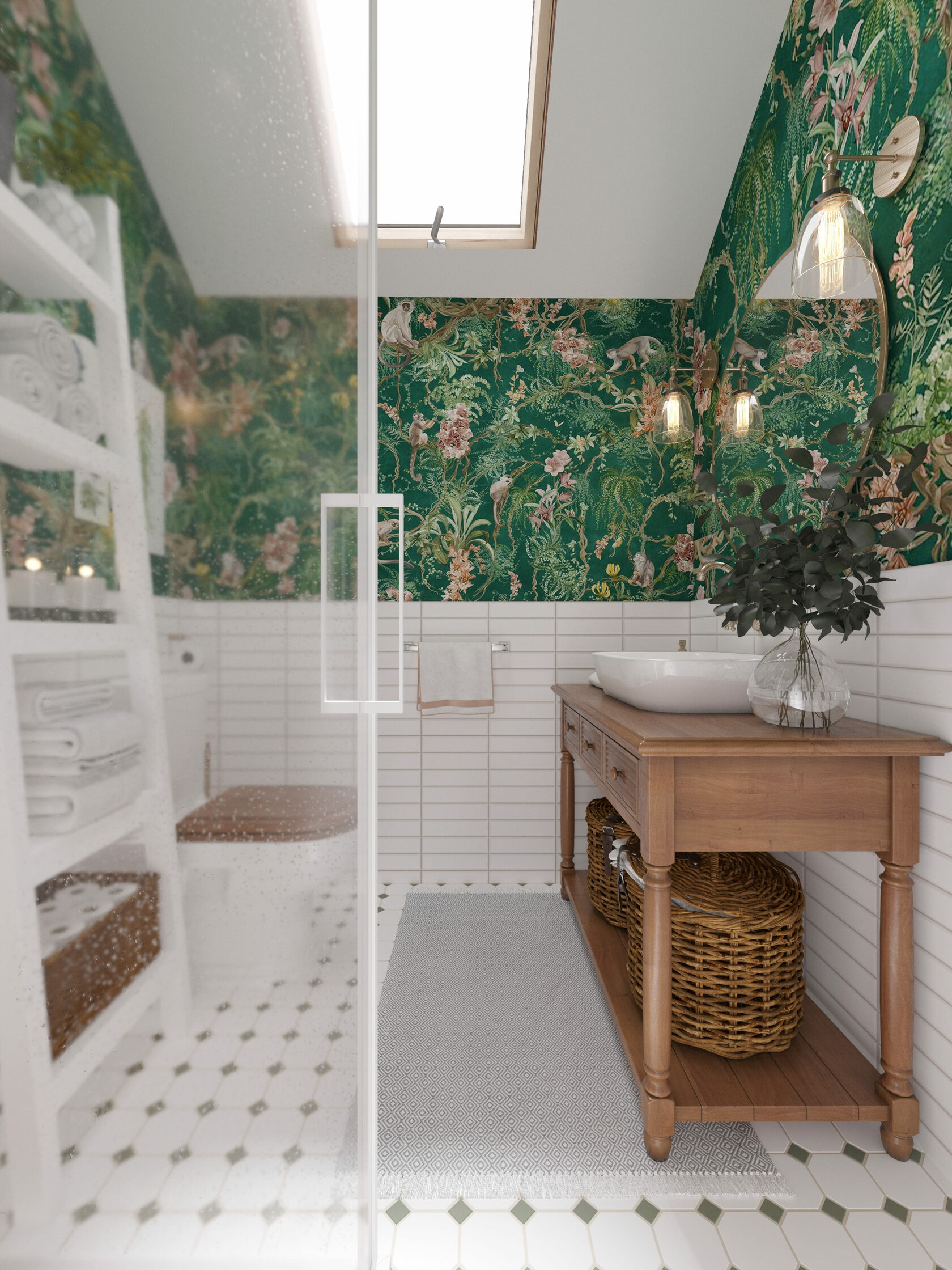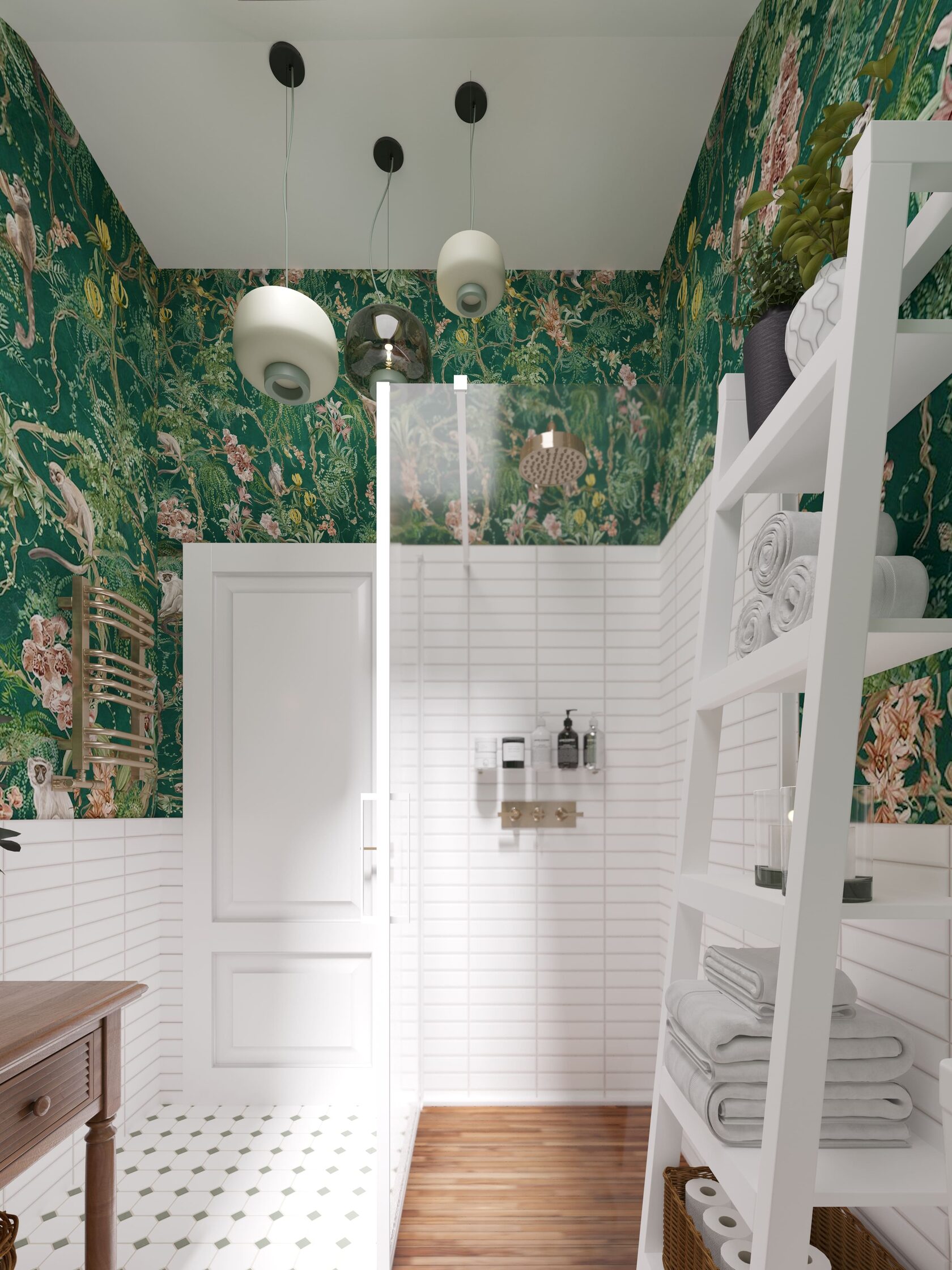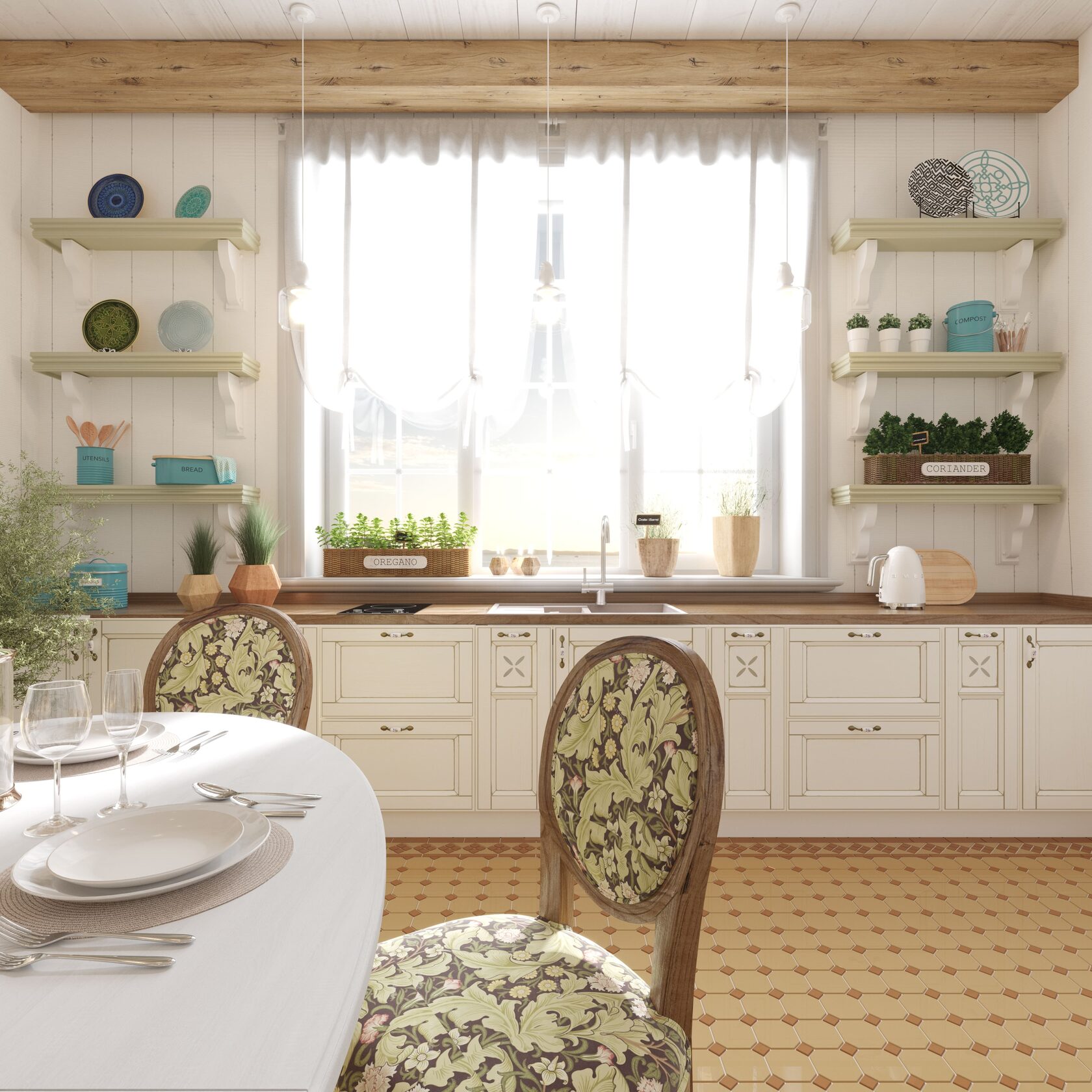 Стилистика очень уютная и "милая". Хозяйка любит зелень и прованс — именно это мы пытались показать в интерьере. Испанская плитка, вагонка, очаровательные обои и отделка деревом — основные элементы интерьера.