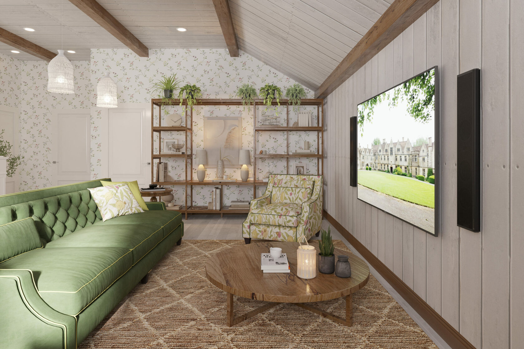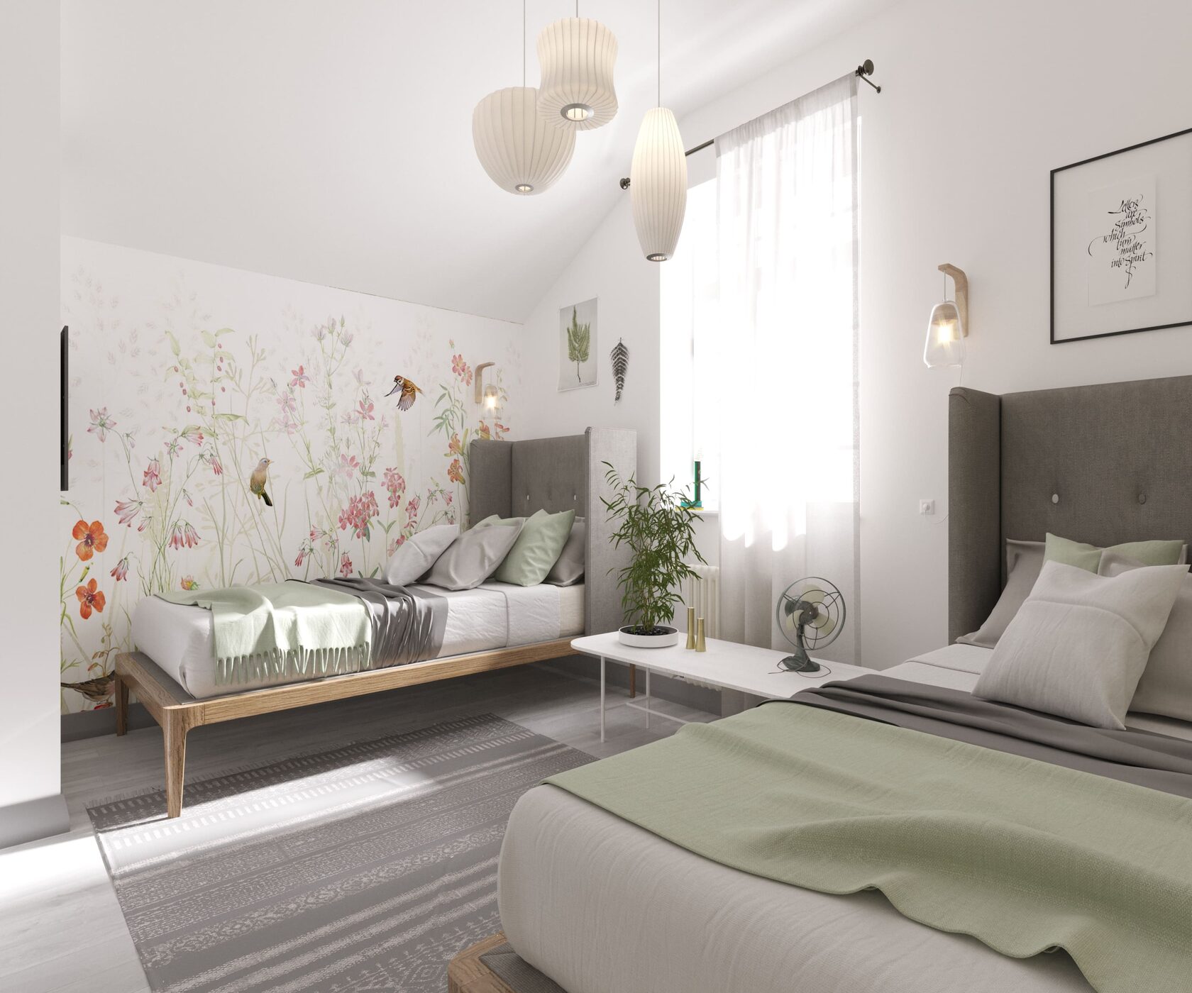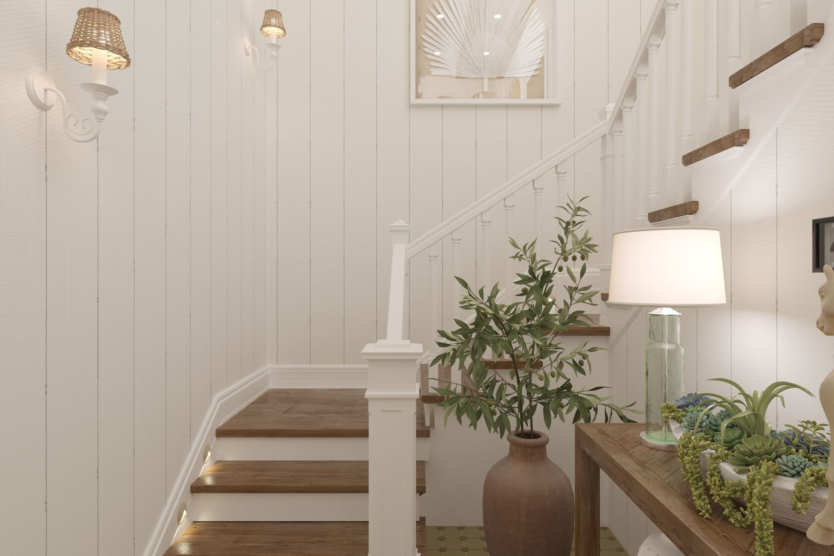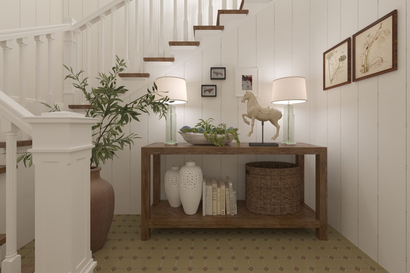Стилистика очень уютная и "милая". Хозяйка любит зелень и прованс — именно это мы пытались показать в интерьере. Испанская плитка, вагонка, очаровательные обои и отделка деревом — основные элементы интерьера.
