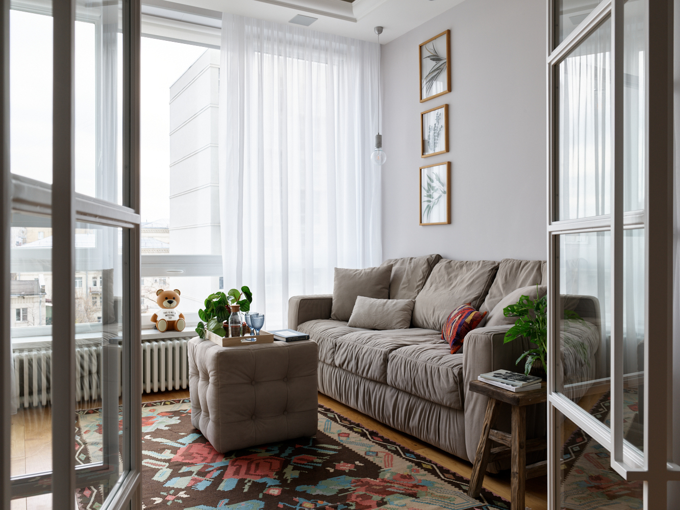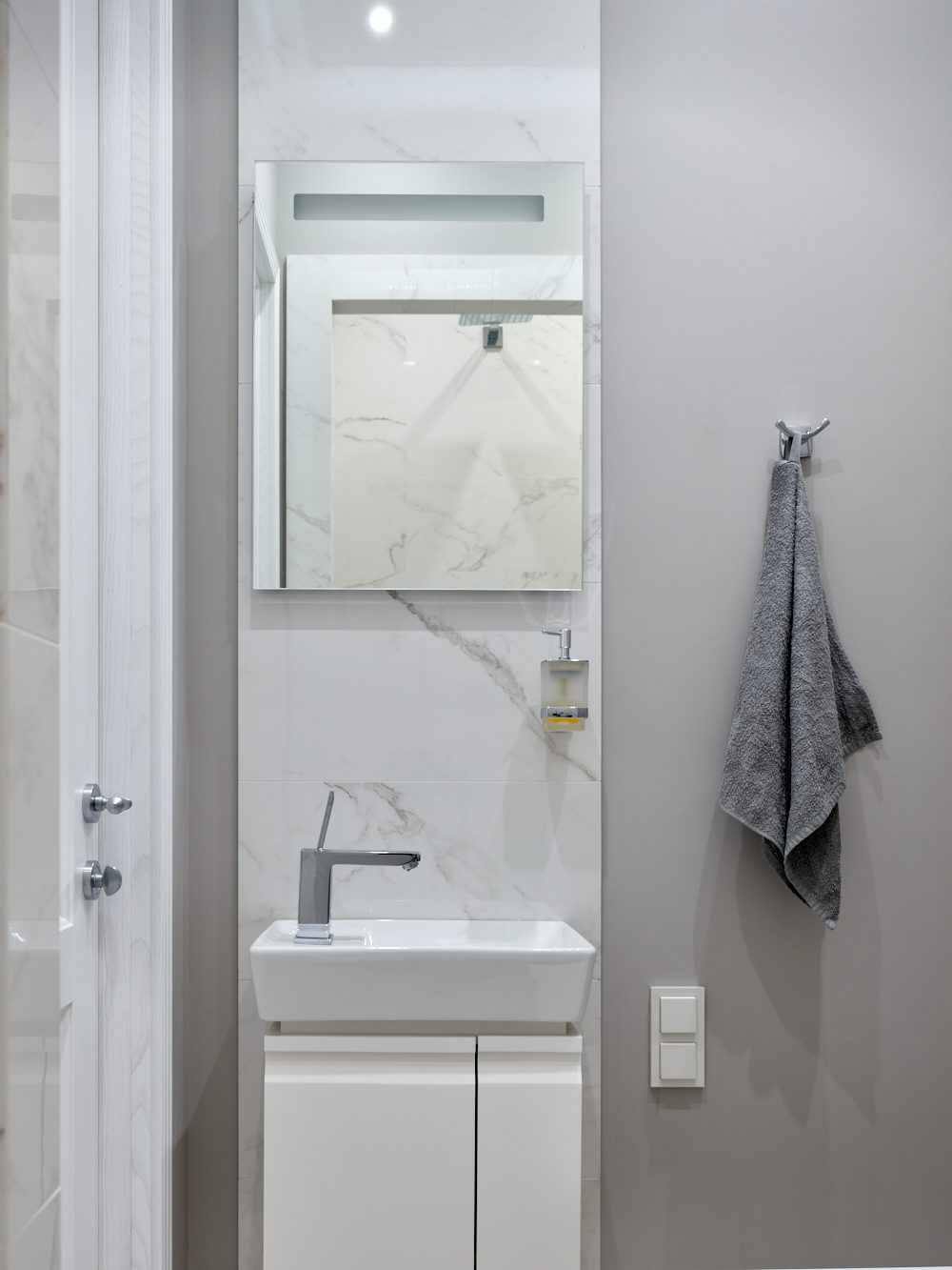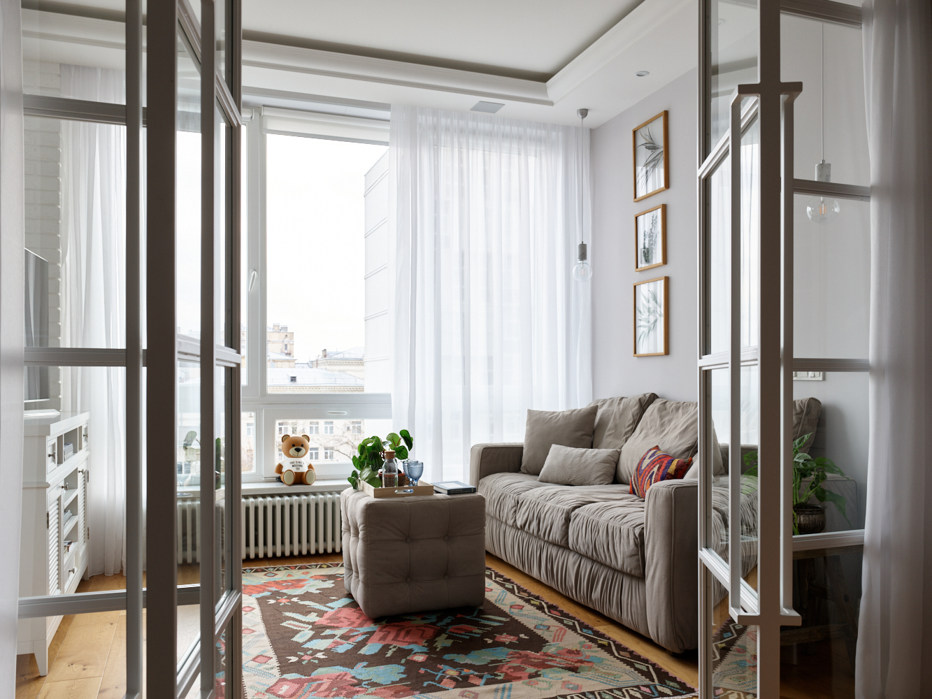 Небольшая, но стильная квартира для девушки — сдержанная, лаконичная и очень светлая! Как из помещения с двумя окнами сделать полноценную двушку? Можно!