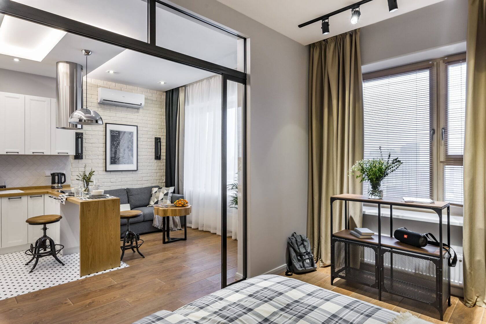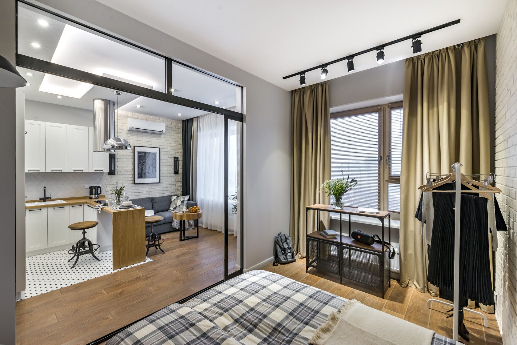 Для работы нам досталось помещение 38кв.м. с двумя окнами, двумя стояками, без единой перегородки! Пожелания всех членов семьи — грамотно спланировать студию в стиле лофт так, чтобы разместить полноценную кухню с гостиной, сделать отдельную спальню, ванную комнату (обязательно с ванной и никаких душевых) и гардеробную!